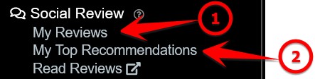 When you have a few reviews, you should also set up My Top Recommendation (arrow 2) to get the full benefit of the Social Review system.